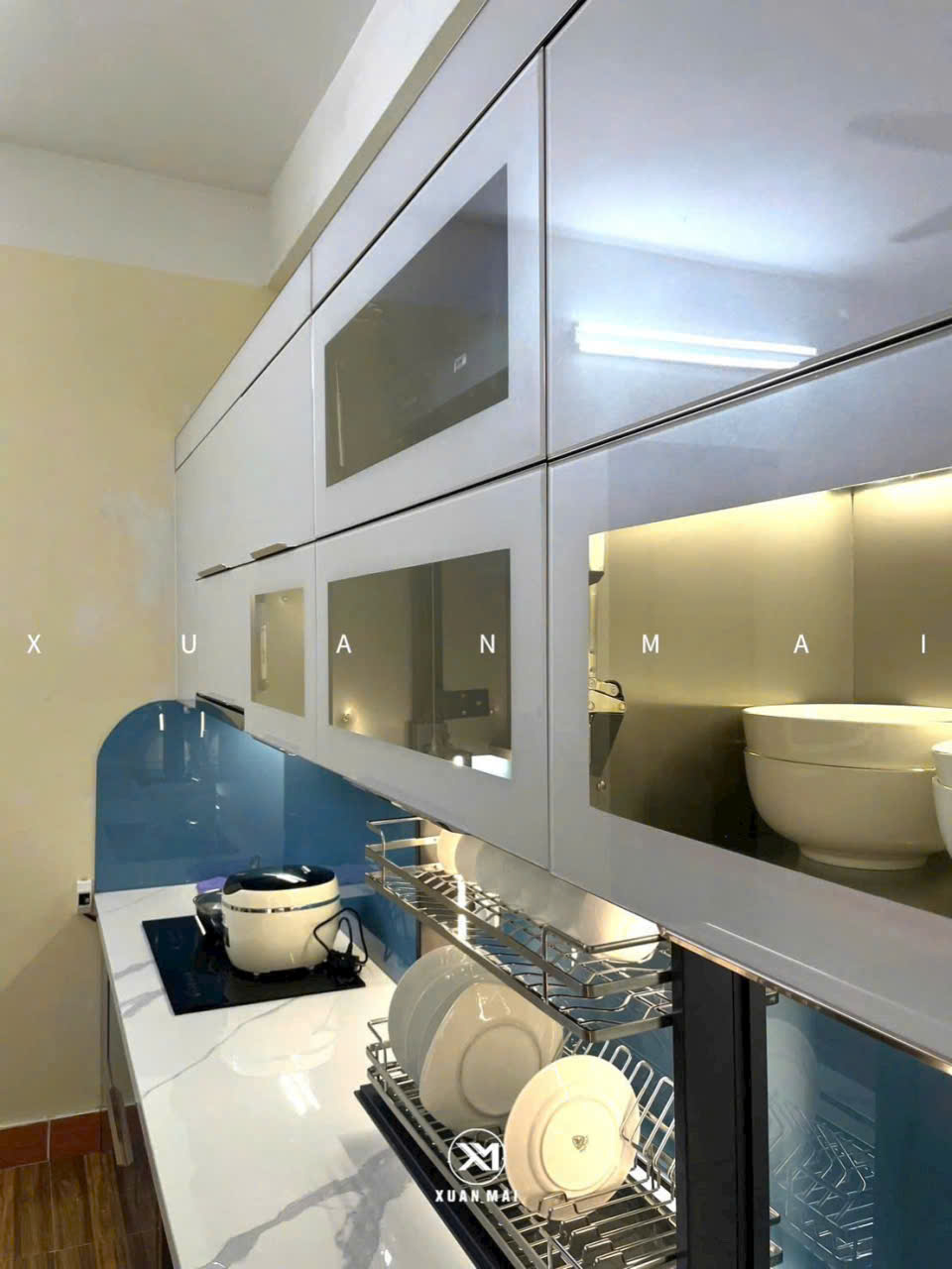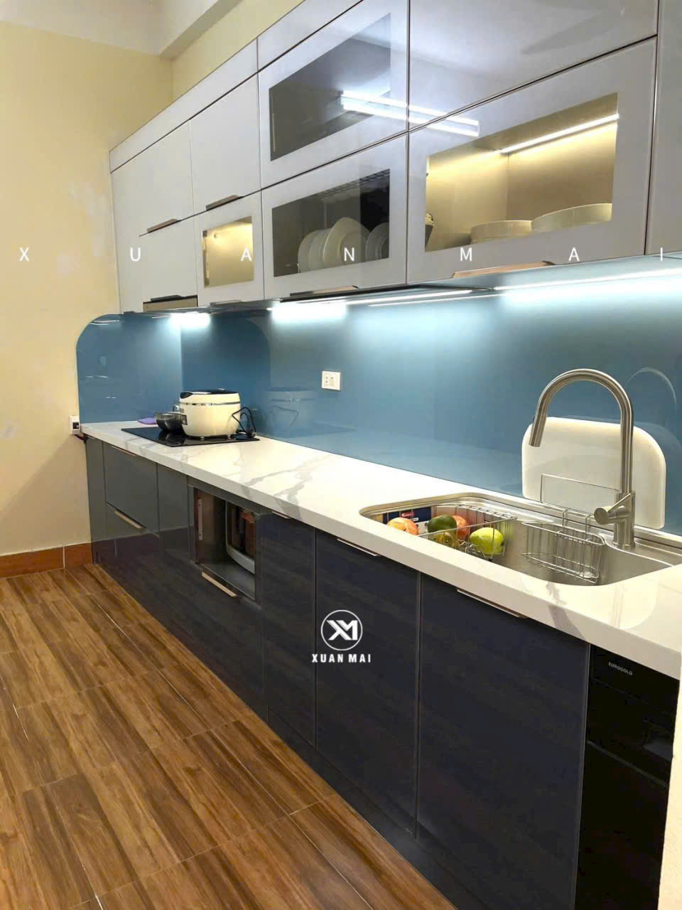 Nội thất Xuân Mai xin phép được giới thiệu đến bạn mẫu tủ bếp inox cánh kính cường lực được Xuân Mai bàn giao cho gia đình Chú Nhận – Hà Đông .